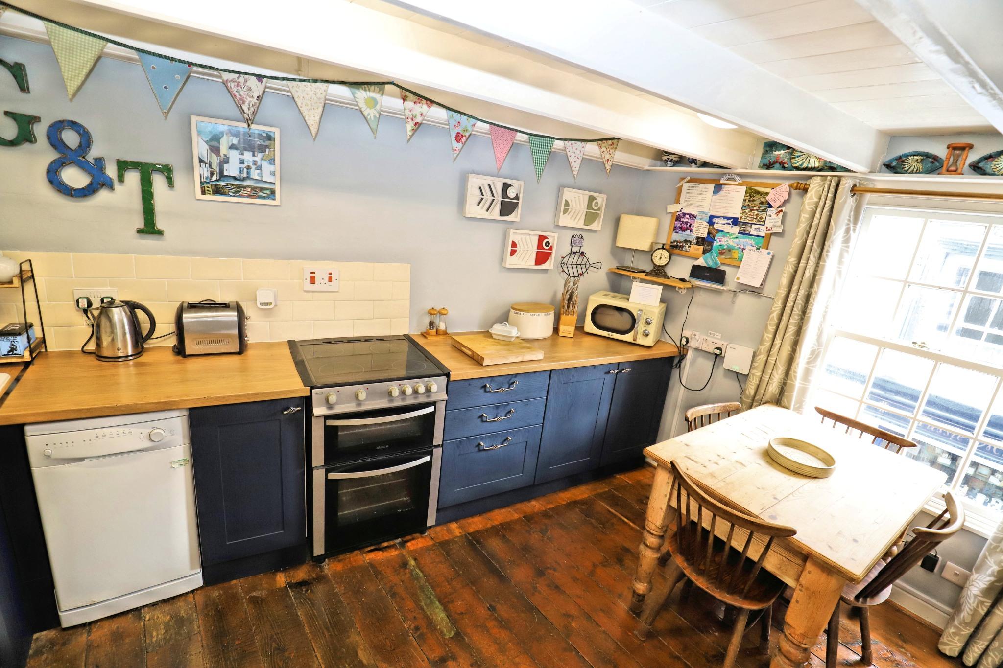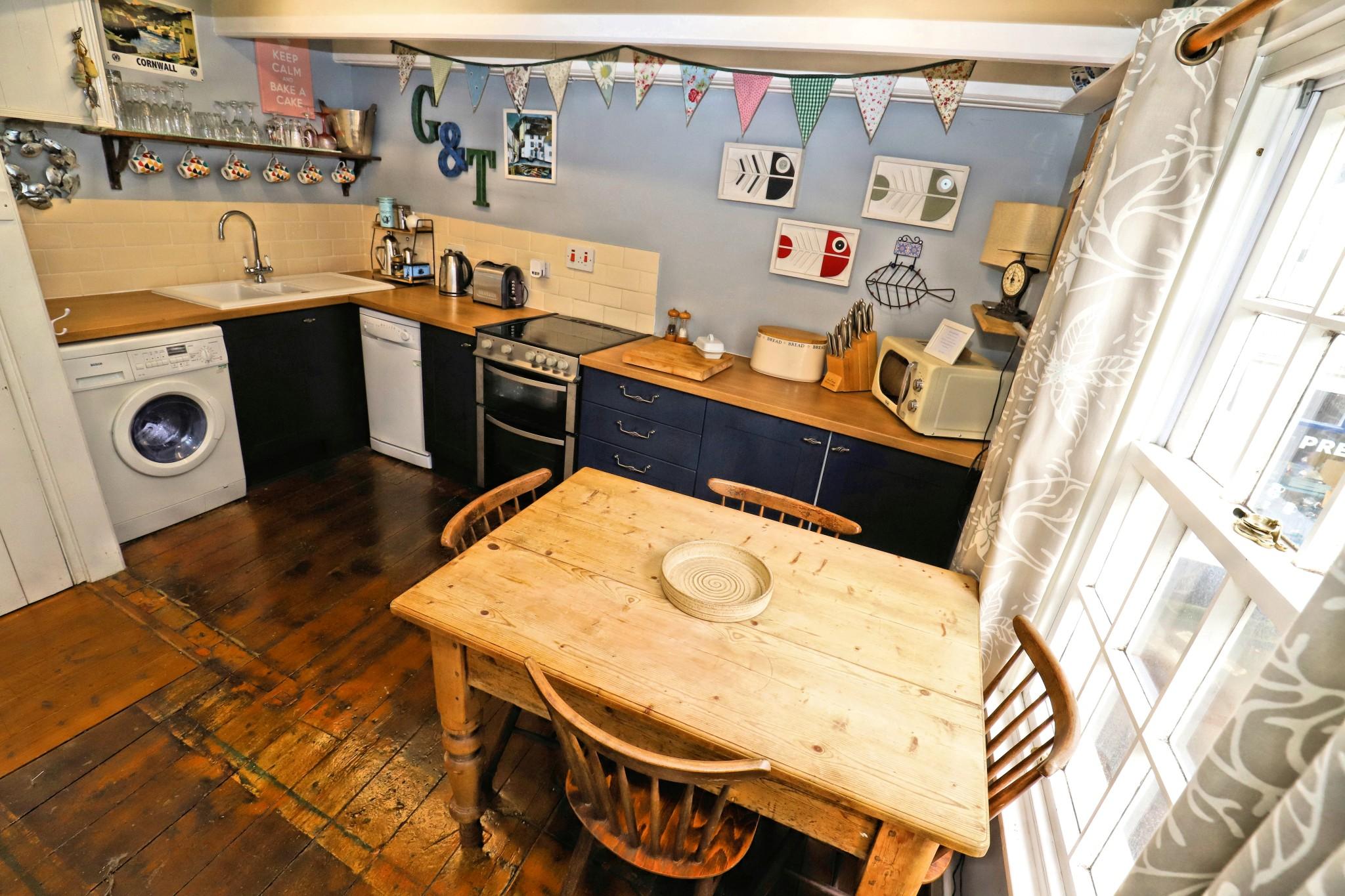 Miss Martha's Cottage is a delightful cottage located in the centre of the village above a traditional sweet shop 'Cornish Goodness'. Just 200 yards from the harbour and with all the village amenities at close hand Miss Martha's is well placed to enjoy the village and comes with the benefit of allocated parking in the main Polperro Car Park. Accommodation consists of two double bedrooms, one of which can be transformed into a twin bedroom if this suits your requirements better. There is a family bathroom with shower over bath, a well equipped kitchen which offers a double electric oven, dishwasher, washing machine, microwave, fridge/freezer and all the utensils to self cater for your holiday. There is a farmhouse table and chairs for meals. The lounge has an attractive feature fireplace with an electric 'log burner effect' fire and a 42" TV with Netflix. There is also an i-phone/i-pod docking station for your entertainment. All comfortably furnished and well decorated with character beams and attractive wooden flooring. Pet friendly (up to 2 dogs can stay free of charge), linen, towels and all utility charges are included. Parking for one car is included in the rental price and is located at the main Polperro Car Park (approx. 8 minute walk). Luggage and passengers can be dropped off close by for your convenience and how to do this is explained in our detailed arrival information provided when booking.