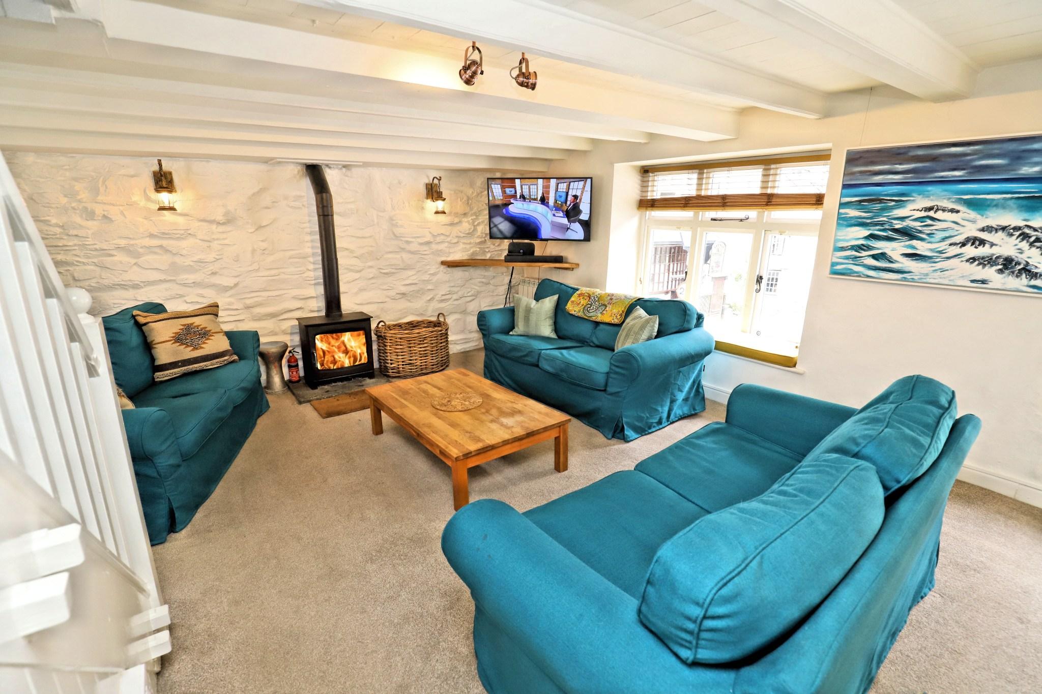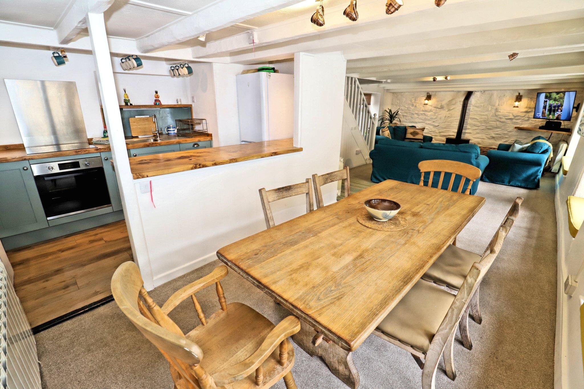 Wesley House joined us for 2025. It is accessed via a few steps and is on the first and second floors of the building. Located next to The Big Green in the centre of the village this character cottage has 3 bedrooms (two king size doubles and a bunk-bedded room) and two shower rooms. There is a large open plan living area with a comfortable lounge at one end with 3 sofas, log burner and SMART TV. There is a dining area for 6 guests and the kitchen is well equipped with electric oven (double) and hob, fridge/freezer, dishwasher, washing machine and microwave. There is also an iron and ironing board and all the utensils you need to self cater. There is no outside space but being located next to The Big Green there is outside seating close by and the harbour is just a 2 minute stroll away. Conveniently situated for all of the amenities Polperro has to offer there are numerous pubs and eateries within a short walk. All utilities are included in the rental price as are towels and A pre-paid parking permit is provided for use in the main public car park (approx 8-10 mins walk). Up to 2 dogs are welcome free of charge.